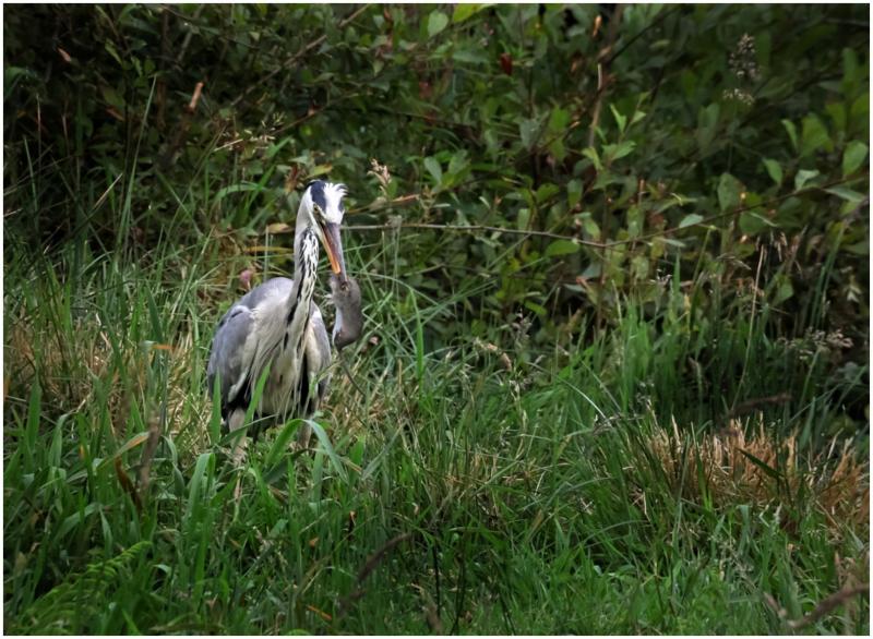 Heron with rat in its beak
